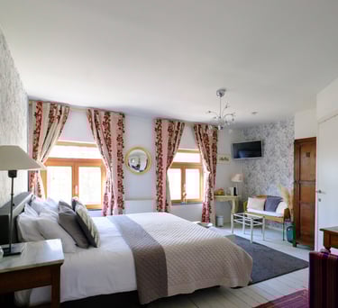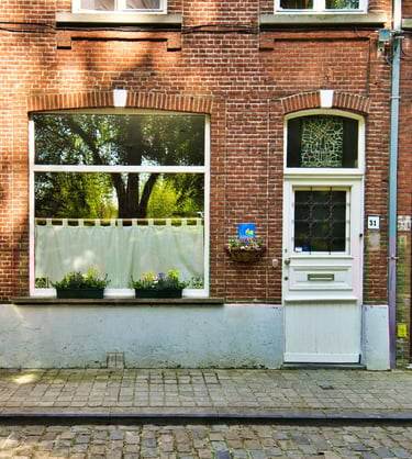 A sophisticated room on the 2nd floor, featuring soft linens and a tranquil atmosphere, offering a picturesque view of De Vesten for restful nights.